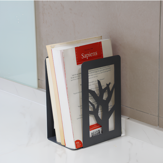 "This metal bookshelf is sturdy and perfect for holding my books and magazines."