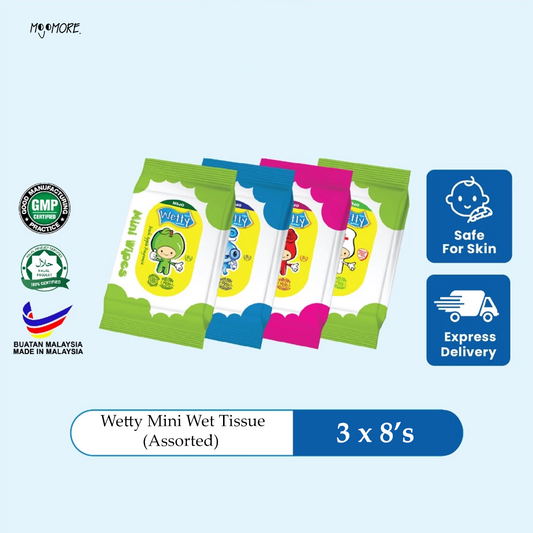 Wetty Mini Wipes 8's Wet Wipes Fragrance Free Wet Tissue Tisu Basah
