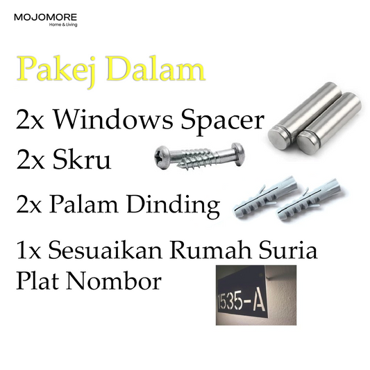 MOJOMORE (Solar + LED) Modern Solar House Number & Address Sign Plate Tanda Rumah