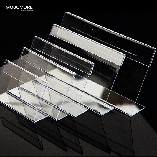 MOJOMORE L Shape Table Sign Display Stand Name Price Card Holder For Retail Bakery Buffet Acrylic Clear Price Name Card