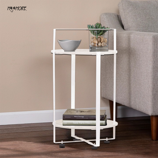 MOJOMORE Modern Resin Round Table -Top End Table with Open Shelf for Living Room